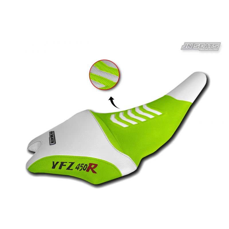 Funda de asiento JN SEATS blanca y verde fluor para Yamaha YFZ 450 R