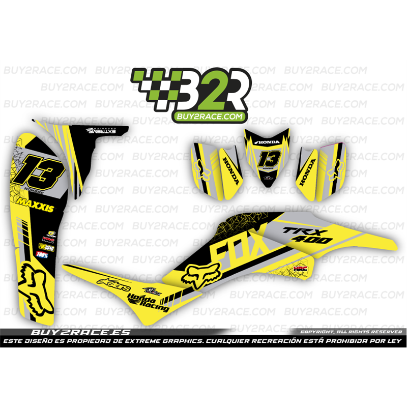 Kit adhesivos personalizable recubrimiento completo Honda TRX400 Fox amarillo y gris