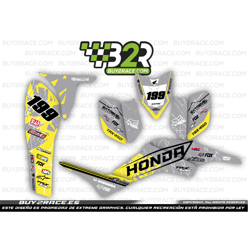 Kit adhesivos personalizable recubrimiento completo Honda TRX400 gris y amarillo