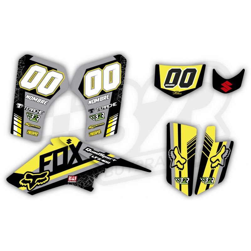 Kit adhesivos Suzuki LTZ 400 Fox amarillo y gris numero y nombre personalizable